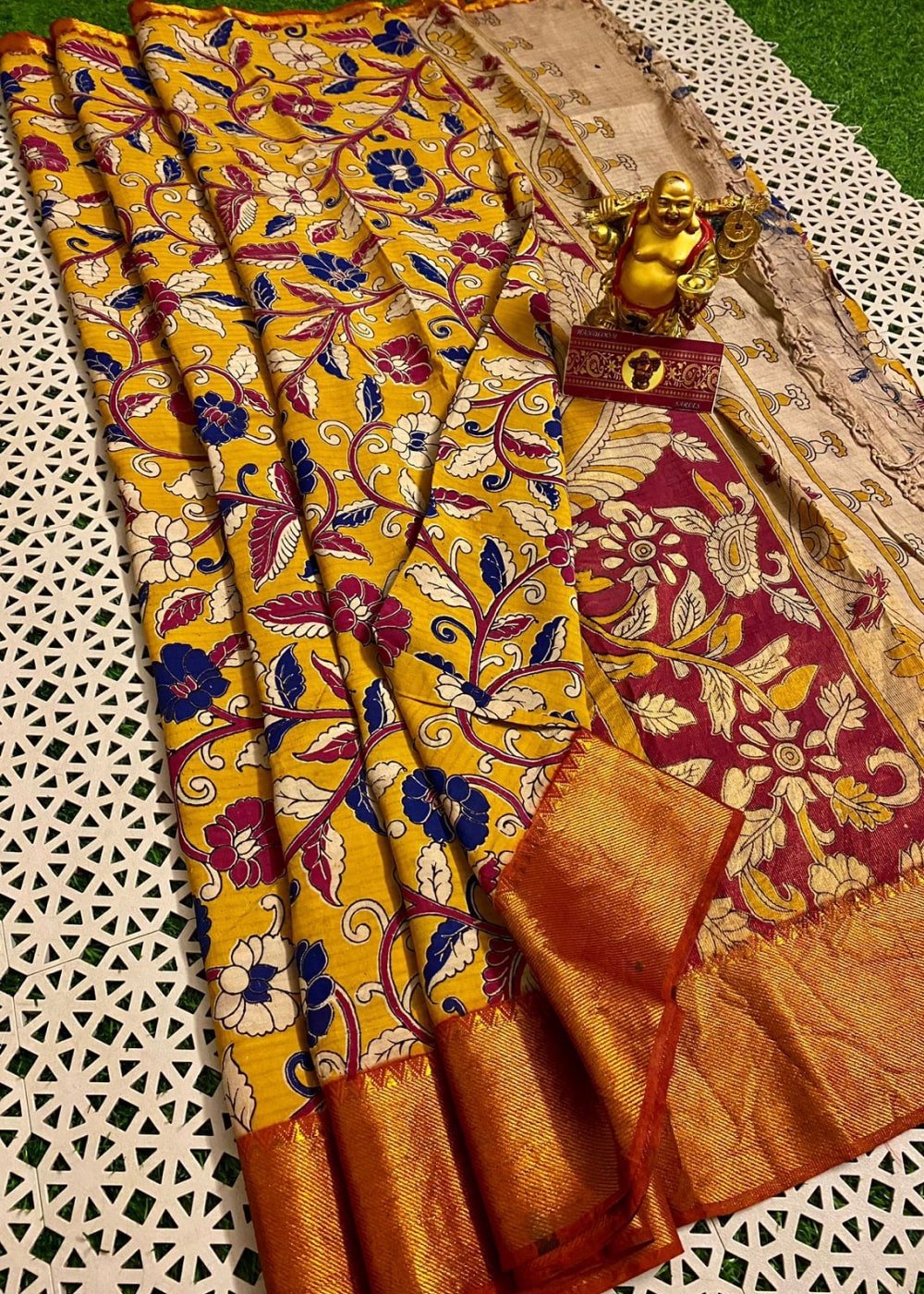 Akarsana (ఆకర్షణ) 6: Pure Mangalagiri handloom silk cotton saree with Kalamkari prints