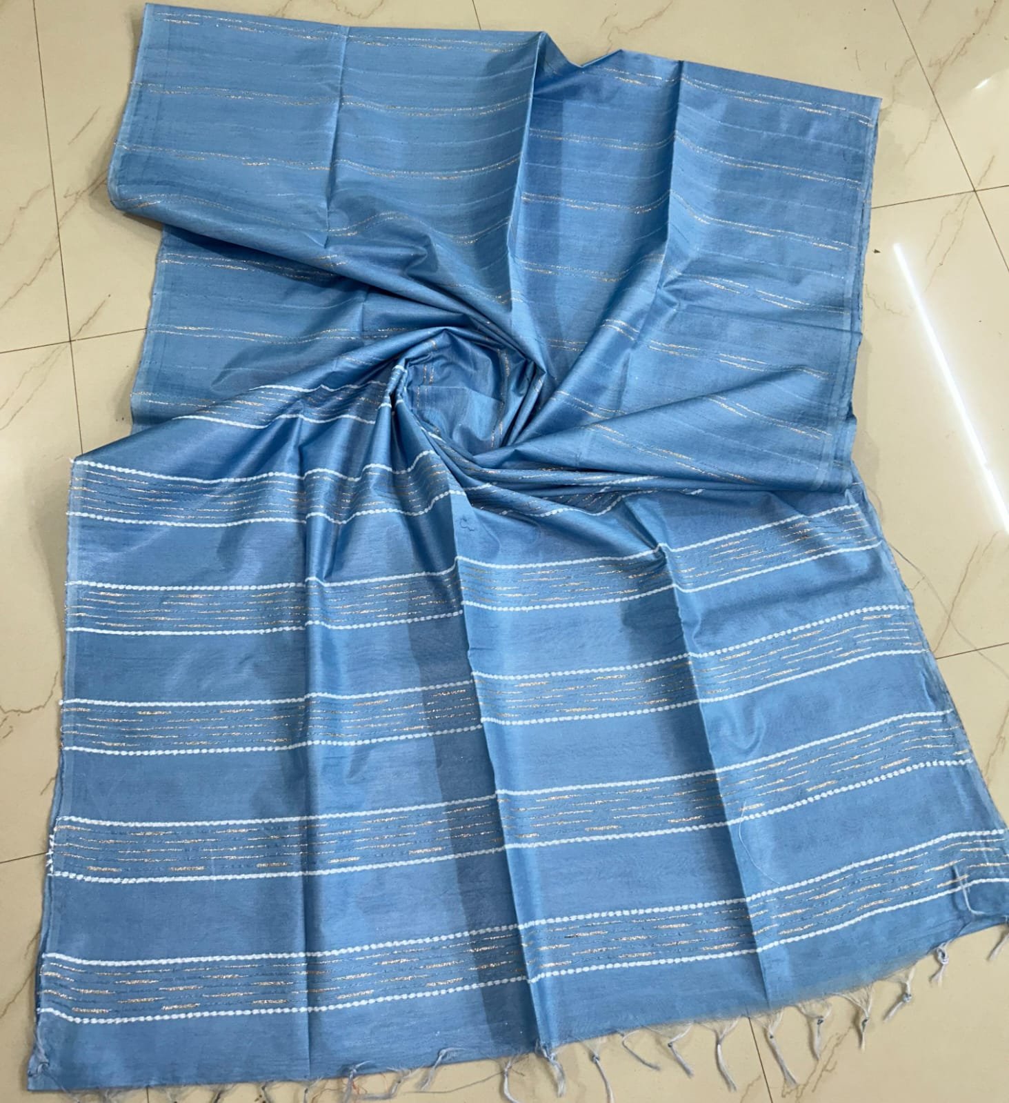 As with any handwoven saree you may find slight inconsistencies in the weave and or colour. These are hallmark of handmade products and are testament to its originality and are not considered as defects.